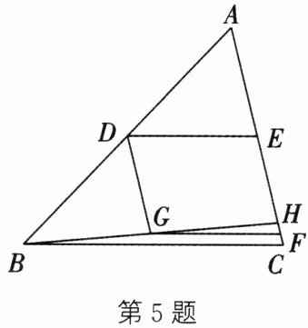 5. 如图,在 $\triangle ABC$ 中,$D$,$E$ 分别为 $AB$,$AC$ 的中点,点 $H$ 在线段 $CE$ 上,连接 $BH$,$G$,$F$ 分别为 $BH$,$CH$ 的中点.