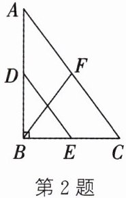 2. (教材变式)如图,在 $Rt\triangle ABC$ 中,$\angle ABC = 90^{\circ}$,$BF$ 是边 $AC$ 上的中线,$DE$ 是 $\triangle ABC$ 的中位线. 若 $DE = 6$,则 $BF$ 的长为(