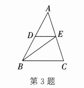 3. (2024·浙江)如图,$D$,$E$ 分别是 $\triangle ABC$ 的边 $AB$,$AC$ 的中点,连接 $BE$,$DE$. 若 $\angle AED = \angle BEC$,$DE = 2$,则 $BE$ 的长为