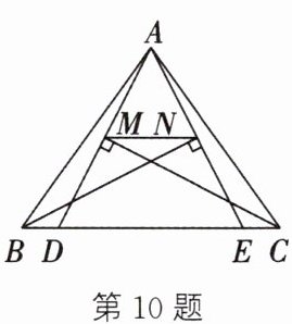 10. (整体思想)如图,$\triangle ABC$ 的周长为 19,点 $D$,$E$ 在边 $BC$ 上,$\angle ABC$ 的平分线垂直于 $AE$,垂足为 $N$,$\angle ACB$ 的平分线垂直于 $AD$,垂足为 $M$. 若 $BC = 7$,则 $MN$ 的长为