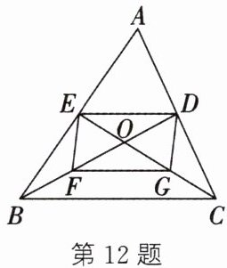 12. (2024·新疆)如图,$\triangle ABC$ 的中线 $BD$,$CE$ 相交于点 $O$,$F$,$G$ 分别是 $OB$,$OC$ 的中点,连接 $DE$,$EF$,$FG$,$GD$.