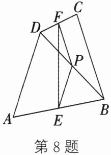 8. 如图,在四边形 $ABCD$ 中,$P$ 是对角线 $BD$ 的中点,$E$,$F$ 分别是 $AB$,$CD$ 的中点,$AD = BC$,$\angle PEF = 18^{\circ}$,则 $\angle PFE$ 的度数为