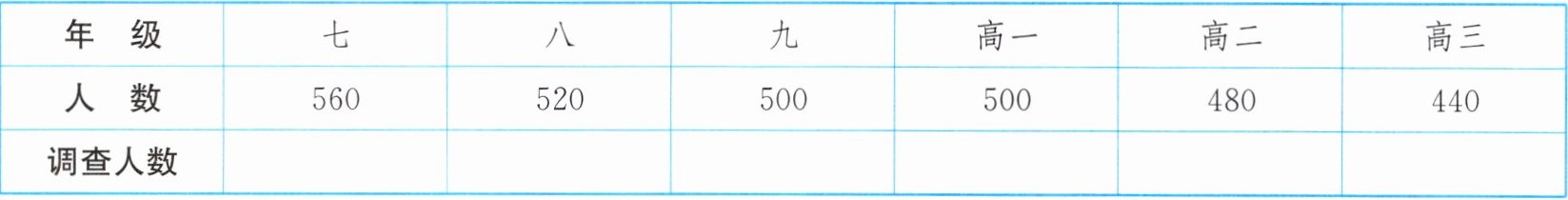 ② 考虑到不同年级学生的视力差异,为了保证样本有较好的代表性,各年级应分别调查多少人? 将结果填写到表中.