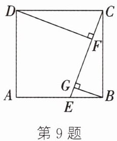 9. 如图,在正方形 $ABCD$ 中,点 $E$ 在边 $AB$ 上,连接 $CE$,过点 $D$ 作 $DF⊥ CE$ 于点 $F$,过点 $B$ 作 $BG⊥ CE$ 于点 $G$。若 $BG = 3$,$DF = 8$,则 $FG$ 的长为(