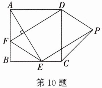 10. 如图,在正方形 $ABCD$ 中,$E$ 为边 $BC$ 上一点,连接 $AE$,$DF⊥ AE$,交 $AB$ 于点 $F$,连接 $FE$。以 $FD$,$FE$ 为邻边构造 $□ DFE P$,连接 $CP$。若 $\angle AFD=\alpha$,则 $\angle EPC$ 的度数为(