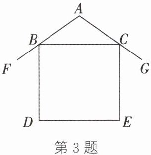 3. (新情境·现实生活)如图所示为一民居侧面截图,屋坡$AF$,$AG$分别架在墙体的点$B$,$C$处,且$AB = AC$,侧面四边形$BDEC$为矩形.若测得$\angle FBD = 55^{\circ}$,则$\angle A =$