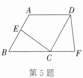 5. 如图,点$E$在菱形$ABCD$的边$AB$上,点$F$在边$BC$的延长线上,连接$CE$,$DF$,给出下列条件:①$BE = CF$;②$CE⊥ AB$,$DF⊥ BC$;③$CE = DF$;④$\angle BCE = \angle CDF$.只选取其中一个添加,不能确定$\triangle BCE\cong\triangle CDF$的是(