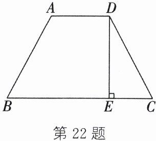 答案:22.如图,过点$D$作$DF// AB$,交$BC$于点$F$。$\because AD// BC$,$DF// AB$,$\therefore$四边形$ABFD$为平行四边形,$\therefore BF=AD$,$AB=DF$。