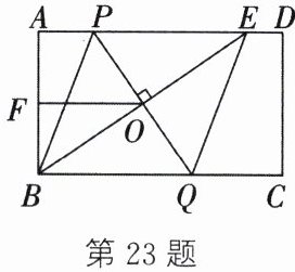 答案:23.(1)$\because PQ$垂直平分$BE$,$\therefore QB=QE$,$OB=OE$。$\because$四边形$ABCD$是矩形,$\therefore AD// BC$,$\therefore\angle QBO=\angle PEO$。在$\triangle BOQ$和$\triangle EOP$中,$\begin{cases}\angle QBO=\angle PEO,\\OB=OE,\\\angle BOQ=\angle EOP,\end{cases}$