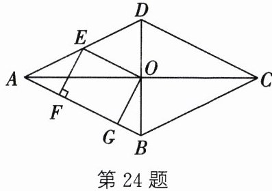 24. (8分)如图,菱形ABCD的对角线AC,BD相交于点O,E是AD的中点,连接OE,点F,G在AB上,$EF⊥ AB$,$OG// EF$.