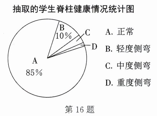 (2)该校共有学生1600名,请估计脊柱侧弯程度为中度和重度的总人数;