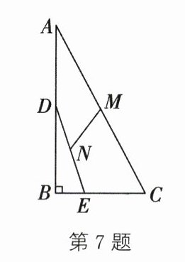7. 如图,在 $Rt\triangle ABC$ 中,$\angle B = 90^{\circ}$,点 $D$,$E$ 分别在边 $AB$ 和 $BC$ 上,且 $AD = 4$,$CE = 3$,连接 $DE$,$M$,$N$ 分别是 $AC$,$DE$ 的中点,连接 $MN$,则 $MN$ 的长为(