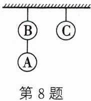 8. 甲、乙、丙三人参加了一次节日活动,幸运的是他们都得到了一件礼物. 事情是这样的:墙上挂着两串礼物(如图),每次只能从其中一串的最下端取一件,直到礼物取完为止. 甲第一个取得礼物,然后,乙、丙依次取得第 2 件、第 3 件礼物. 事后他们打开这些礼物仔细比较发现,礼物 B 最精美,则取得礼物 B 的概率最大的是(