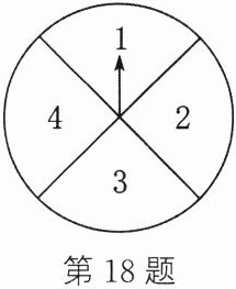 18. (10 分)如图所示为一个可以自由转动的转盘,被平均分为 4 份,分别标有数字 1,2,3,4. 小敏和小华各自转动转盘 1 次,待转盘停止转动后,指针所指的数字就是他们所得的数字(若指针指向分界线,则重转). 先由小敏转动转盘,指针所指的数字记为 $A$,再由小华转动转盘,指针所指的数字记为 $B$. 下列事件中,哪些是必然事件?哪些是随机事件?哪些是不可能事件?
