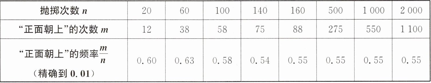 则抛掷这枚棋子出现“正面朝上”的概率约为(