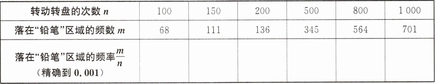 (3)转动该转盘一次,获得铅笔的概率约是