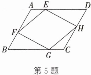 5. 如图,$E$,$F$,$G$,$H$ 分别是 $□ ABCD$ 的边 $AD$,$AB$,$BC$,$CD$ 上的点,且 $AE = CG$,$BF = DH$。求证:四边形 $EFGH$ 是平行四边形。