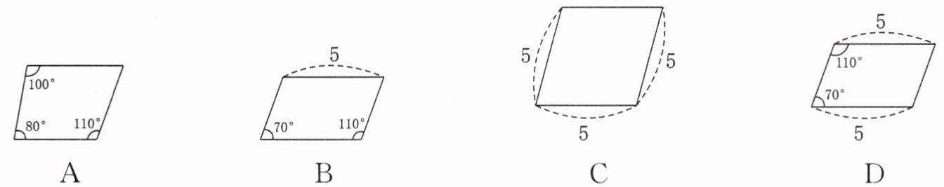 2. 依据所标数据,下列图形一定为平行四边形的是(
