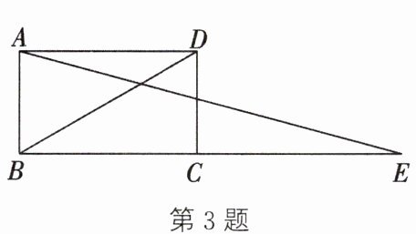3. 如图,$BD$ 是矩形 $ABCD$ 的对角线,延长 $BC$ 至点 $E$,使 $CE = BD$,连接 $AE$. 如果 $∠ADB = 30^{\circ}$,那么 $∠E$ 的度数为