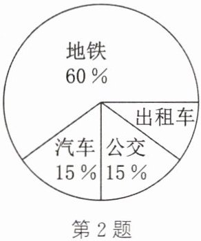 2.(2025·上海)某高铁站出站后有出租车、地铁、汽车、公交等出行方式,高铁站为调查各个出行方式的人流,先对2000人展开调查,结果如图所示.若某日高铁站出站客流约为1.8万人,则其中约有