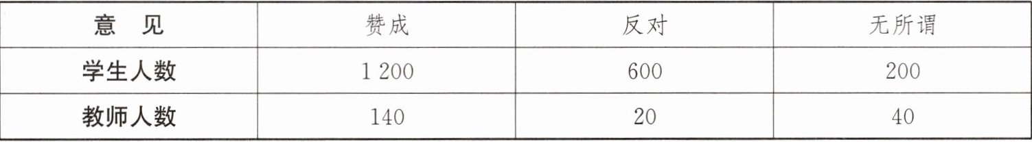 3.(教材变式)为了鼓励学生课外阅读,学校公布了“阅读奖励计划”方案,征求学生和教师的意见,人数统计结果如下表: