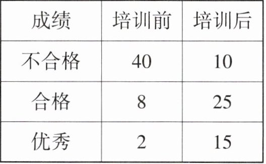 4. 老师对某班全体学生在电脑培训前后进行了一次水平测试,考分以同一标准划分为“不合格”“合格”“优秀”三个等级,成绩如表.