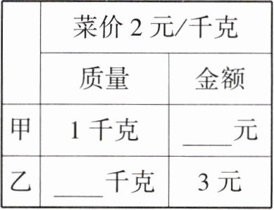 菜价 $3$ 元/千克 菜价 $2$ 元/千克