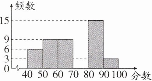 答案:4. 75 解析:由题意知,及格的人数为60 - (6 + 9) = 45(人),所以估计全校成绩及格的百分率为$\frac{45}{60}×100\% = 75\%$.