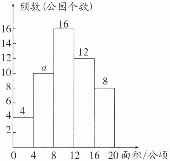 2. (2024·广州中考改编)为了解公园用地面积$x$(单位:公顷)的基本情况,某地随机调查了本地$50$个公园的用地面积,按照$0 < x ≤ 4$,$4 < x ≤ 8$,$8 < x ≤ 12$,$12 < x ≤ 16$,$16 < x ≤ 20$的分组绘制了如图所示的频数分布直方图,下列说法正确的是(
