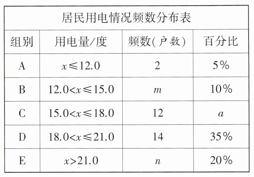 组别用电量/度频数(户数)百分比