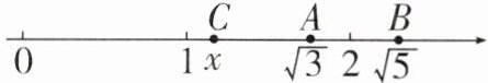 ∵ 数轴上与$\sqrt{3}$, $\sqrt{5}$对应的点分别是A,B,