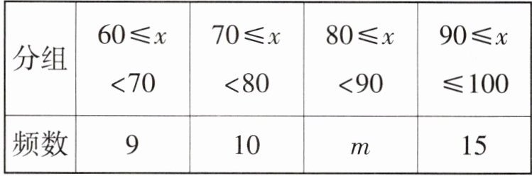 解析:被调查的总人数为6÷10% = 60(人),则第④组有60×40% = 24(人),n = 60 - (8 + 6 + 10 + 24) = 12,m = 60 - (9 + 10 + 15) = 26。