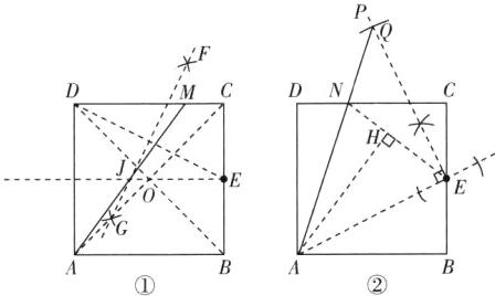 (2)如图②,若P是CE与网格线的交点,先画点P绕点C逆时针旋转90°的对应点Q,再在BD上画点H,使得∠BHE=∠DHQ.