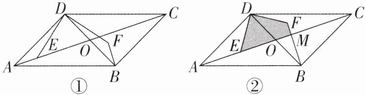 平行四边形是中心对称图形,对称中心是对角线的交点,过对称中心的直线平分平行四边形的面积. 如图①,在 $□ ABCD$ 中,点 $O$ 是对称中心, $EF$ 经过点 $O$,交 $AD$ 于点 $E$,交 $BC$ 于点 $F$,请证明: $EF$ 平分 $□ ABCD$ 的面积;