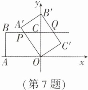 7. 如图,在平面直角坐标系中,点 $A$ 的坐标为 $(-8,0)$,点 $C$ 的坐标为 $(0,6)$,将矩形 $OABC$ 绕点 $O$ 按顺时针方向旋转 $α$ 得到矩形 $OA'B'C'$,此时直线 $OA'$,直线 $B'C'$ 分别与直线 $BC$ 相交于点 $P$,$Q$。当 $45^{\circ}<α≤90^{\circ}$,且 $BP = \frac{1}{2}BQ$ 时,线段 $PQ$ 的长是(
