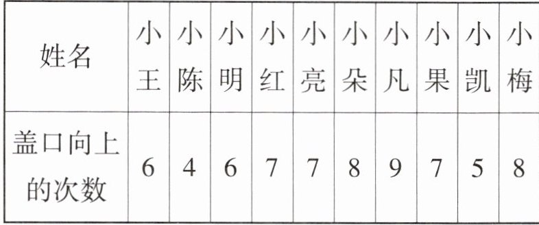 11. (2025·佛山期末)10 名学生,每人做 10 次抛瓶盖的实验,实验数据如下表: