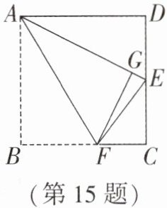 15. (青岛中考)如图,在正方形纸片 $ABCD$ 中,$E$ 是 $CD$ 的中点,将正方形纸片折叠,点 $B$ 落在线段 $AE$ 上的点 $G$ 处,折痕为 $AF$。若 $AD = 4cm$,则 $CF$ 的长为