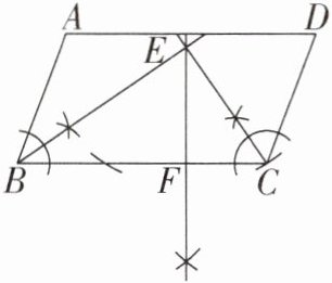 12. 小宇利用尺规在 $□ ABCD$ 内作出点 $E$,又在 $BC$ 边上作出点 $F$,作图痕迹如图所示,若 $EF = 2$,则 $AB$,$CD$ 之间的距离为
