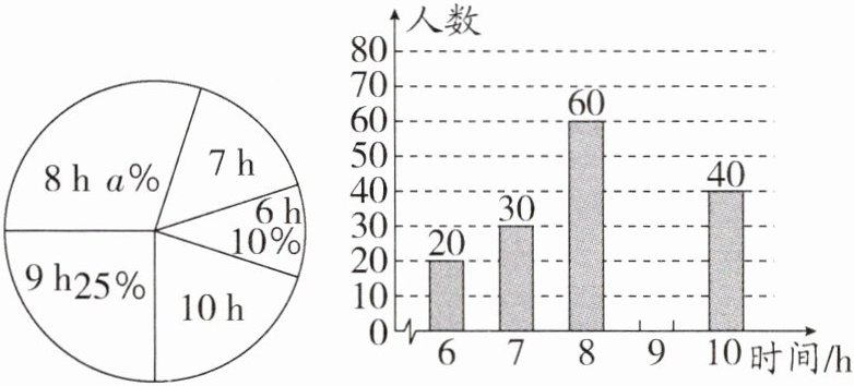 (2)在扇形统计图中,求参加公益活动时间为 7 h 所对应扇形圆心角的度数;