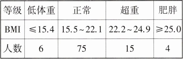 答案:9.380解析:由题意可得,该地区七年级2000名男生中BMI等级为超重或肥胖的总人数是$2000× \frac{15 + 4}{100} = 380$(人)。