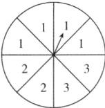 开放性试题 如图,一个圆形转盘被平均分成 8 个小扇形。请在这 8 个小扇形中分别写上数字 1,2,3,任意转动转盘,使得转盘停止转动后,“指针落在数字 1 的区域”的概率最大,且“指针落在数字 2 的区域”的概率与“指针落在数字 3 的区域”的概率相同。