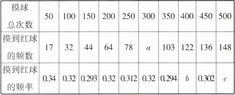 (3)0.3 解析:由图表可得,摸到红球的频率在 0.3 附近摆动,故摸到红球的概率为 0.3.