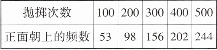 若抛掷硬币的次数为1000,则“正面朝上”的频数最接近(