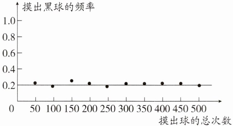 答案:(1) $1:4$ 解析:由题图可知,摸到黑球的概率约为 $0.2$,则摸到白球的概率约为 $0.8$,∴ 从口袋里摸出黑球与白球的概率比为 $0.2:0.8 = 1:4$.