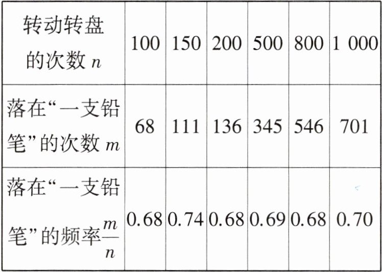(1)转动该转盘一次,获得一支铅笔的概率约为