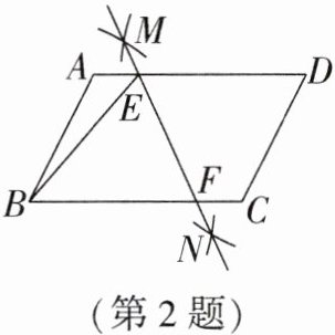 答案:2. B 解析:连接BD,根据作图可得MN是BD的垂直平分线,