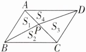 ∴$ S_2+S_4=\frac{1}{2}S_{□ ABCD} $.同理可得$ S_1+S_3=\frac{1}{2}S_{□ ABCD} $,