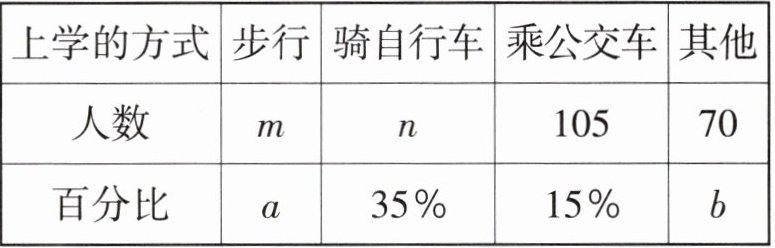 ∴n=700×35%=245,m=700−245−105−70=280,a=280÷700=40%,b=70÷700=10%.
