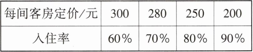 1. 某宾馆有100间相同的客房,经过一段时间的经营,发现在4种不同的客房定价下的客房入住率也会有所差异,如下表,按照这个关系,要使客房的收入最高,从这4种定价中选择,每间客房的定价应为(
