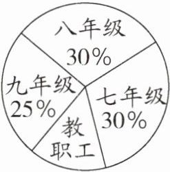 2. (2025·六安模拟)某中学全校师生人数的扇形统计图如图所示,若九年级学生人数与教职工人数之和为600,则全校师生人数之和为(